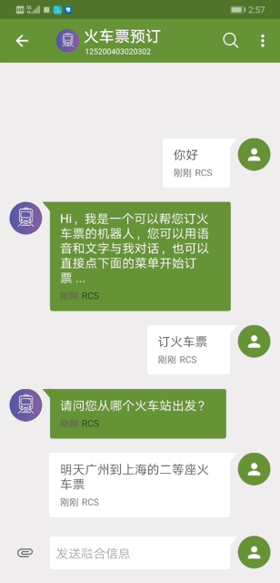实际上,5G消息也已经支持这项功能,称之为短信小程序,顺利获得chatbot(聊天机器人)来实现,在短信界面就能完成搜索、点选、交互等一系列操作。